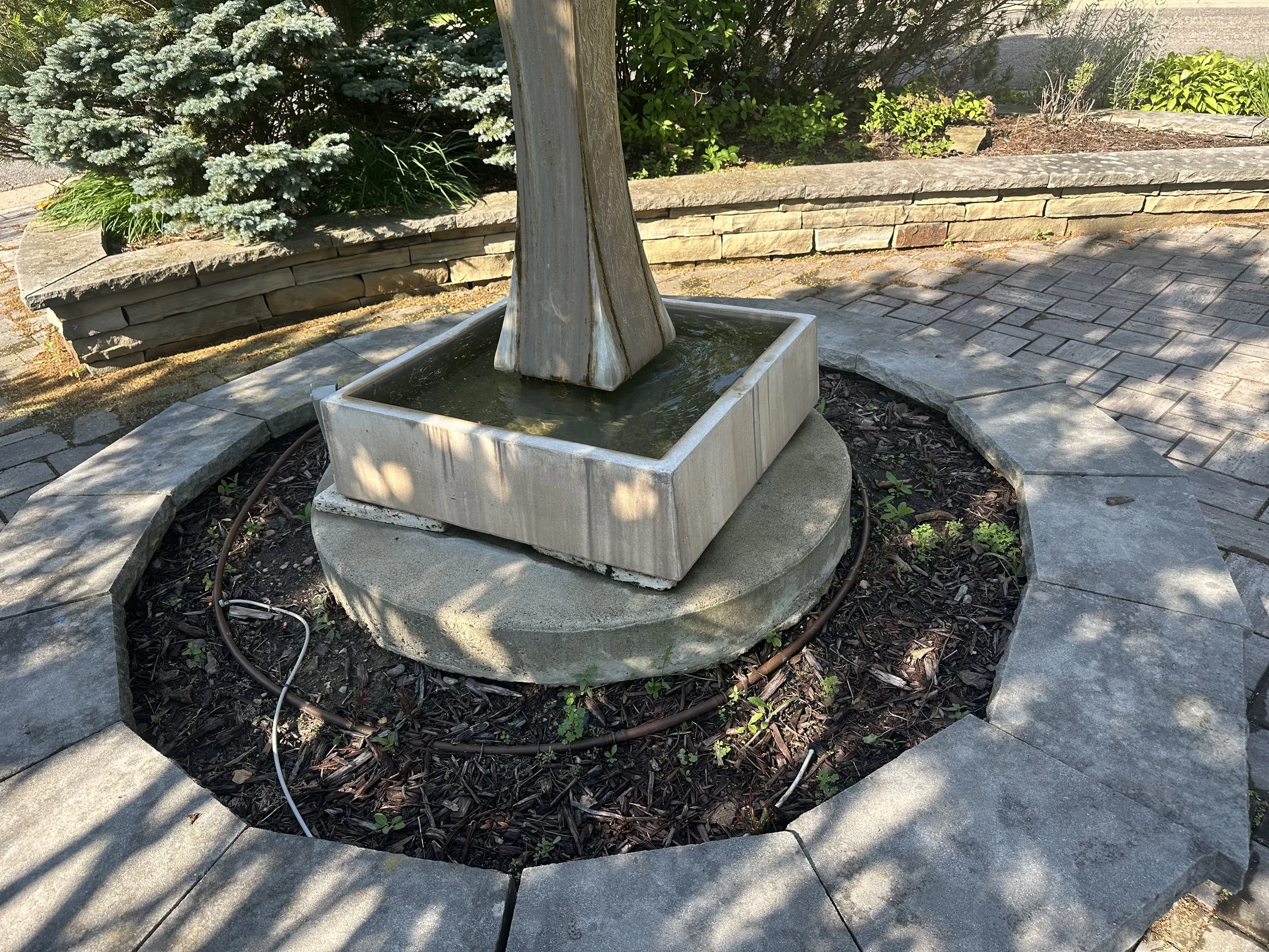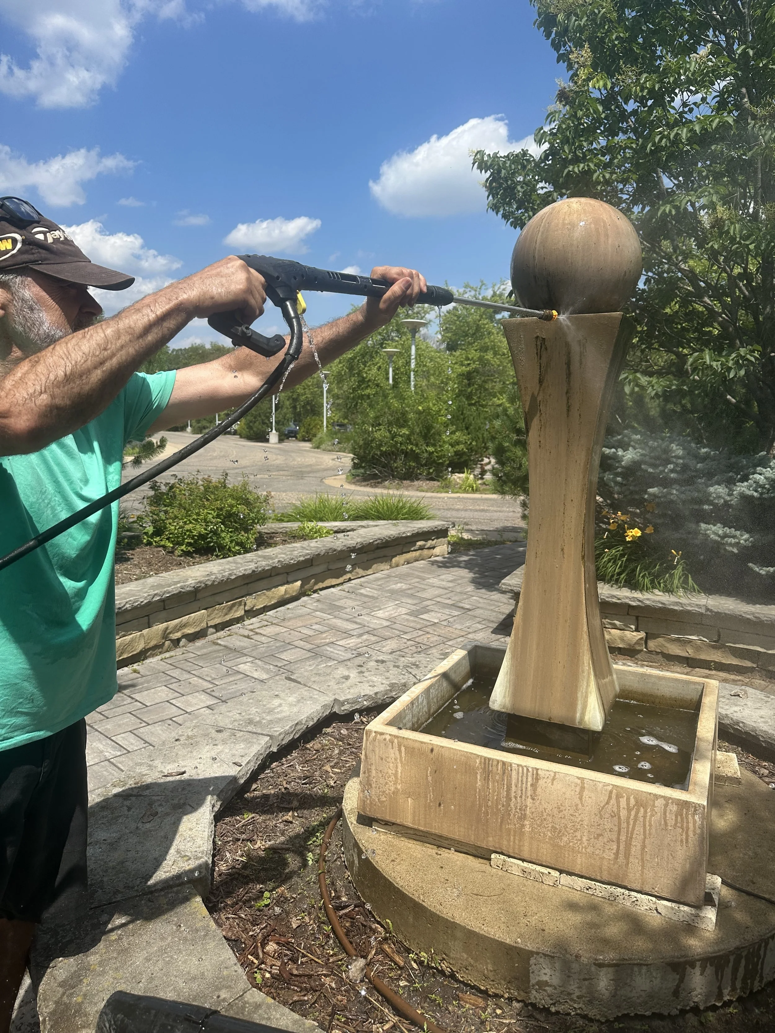 Power washing the fountain
