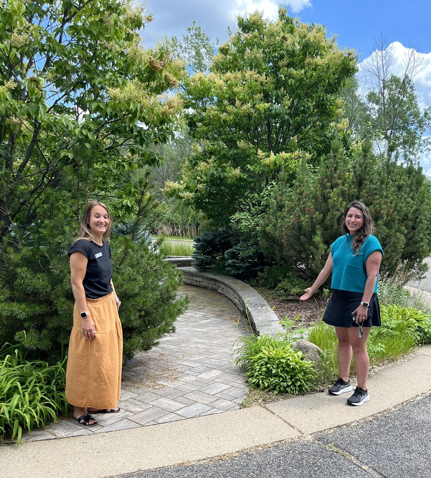 Mara and Amber before overgrown garden