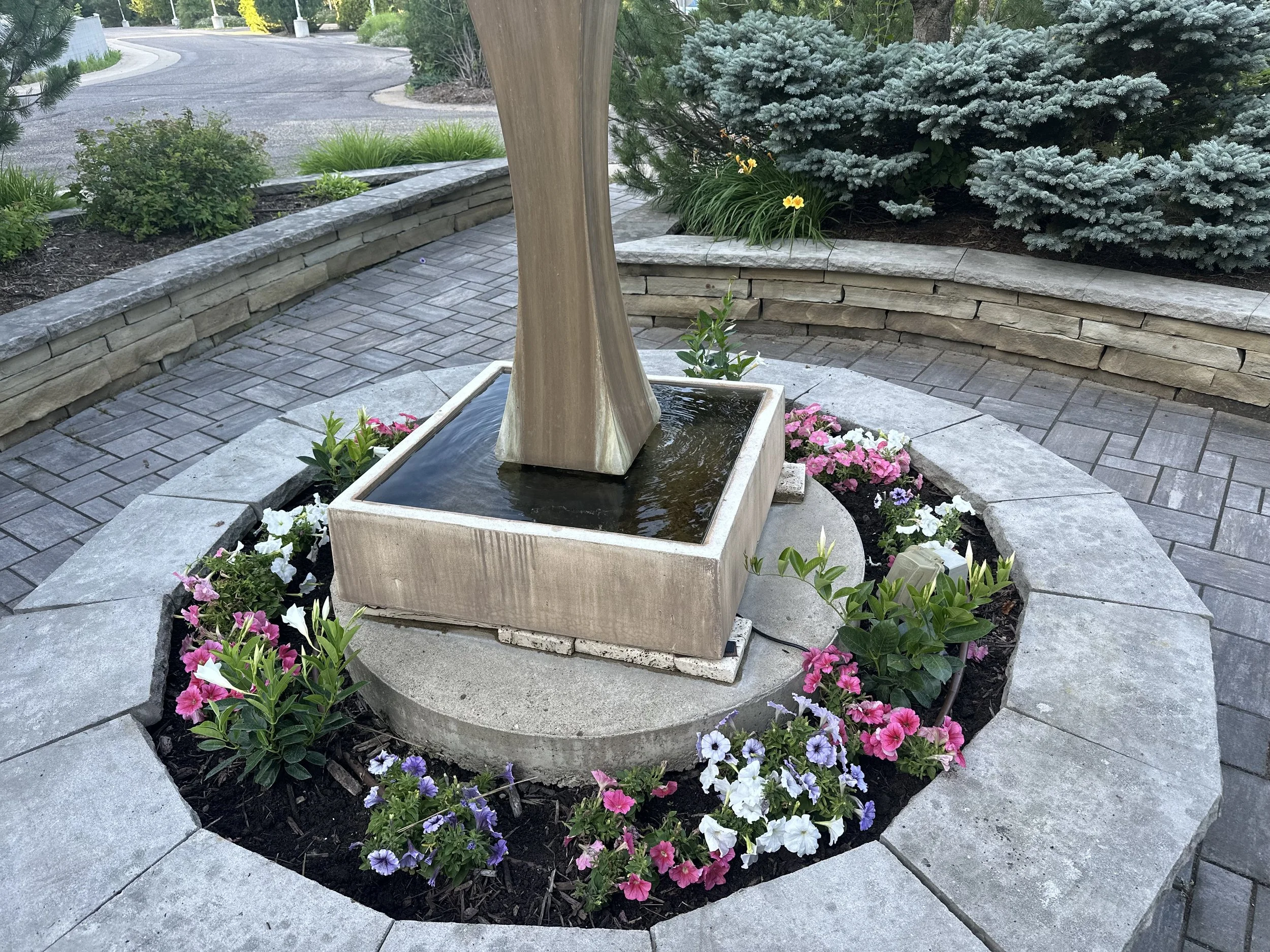 flowers and fountain